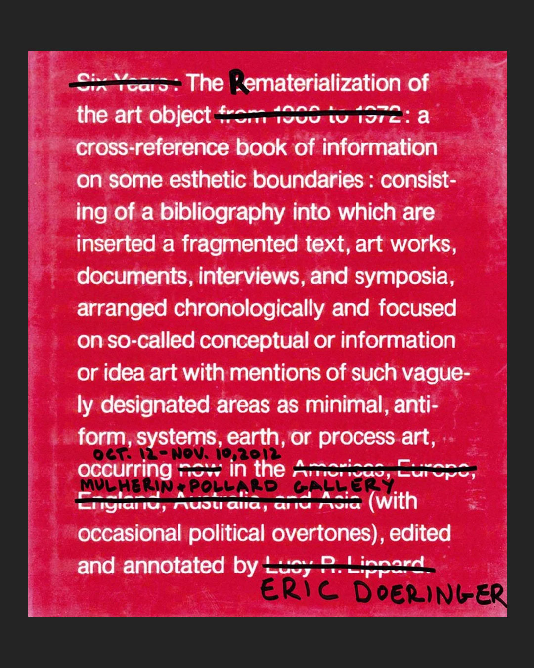 Featuring more than twenty-five publications, this will be the most comprehensive exhibition of Doeringer’s books to date. In addition to the opportunity to meet the artist and get a book – or books – signed, the artist will be producing an exclusive sixteen-page publication to accompany the event.